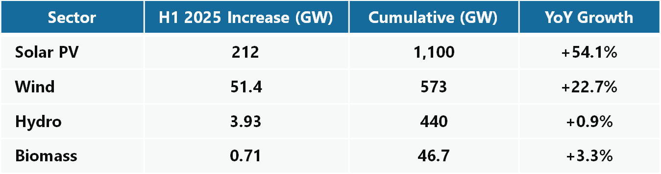 H1 2025 renewable generation: 17,993 TWh (+15.6% YoY)