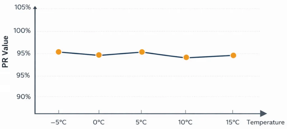 One of the defining advantages of perovskite PV is its exceptionally low temperature coefficient. While crystalline silicon modules typically exhibit coefficients of approximately –0.3% to –0.4% per °C, optimized perovskite modules developed by UtmoLight demonstrate values in the range of –0.001% to –0.004% per °C, roughly two orders of magnitude lower. As a result, perovskite PVs deliver highly stable power output over a wide temperature range, enabling reliable energy production in climates with seasonal variability.