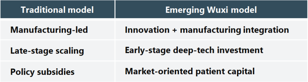 Unlike traditional venture capital, Wuxi’s model emphasizes tolerance for technical uncertainty, extended investment horizons, and active post-investment enablement.